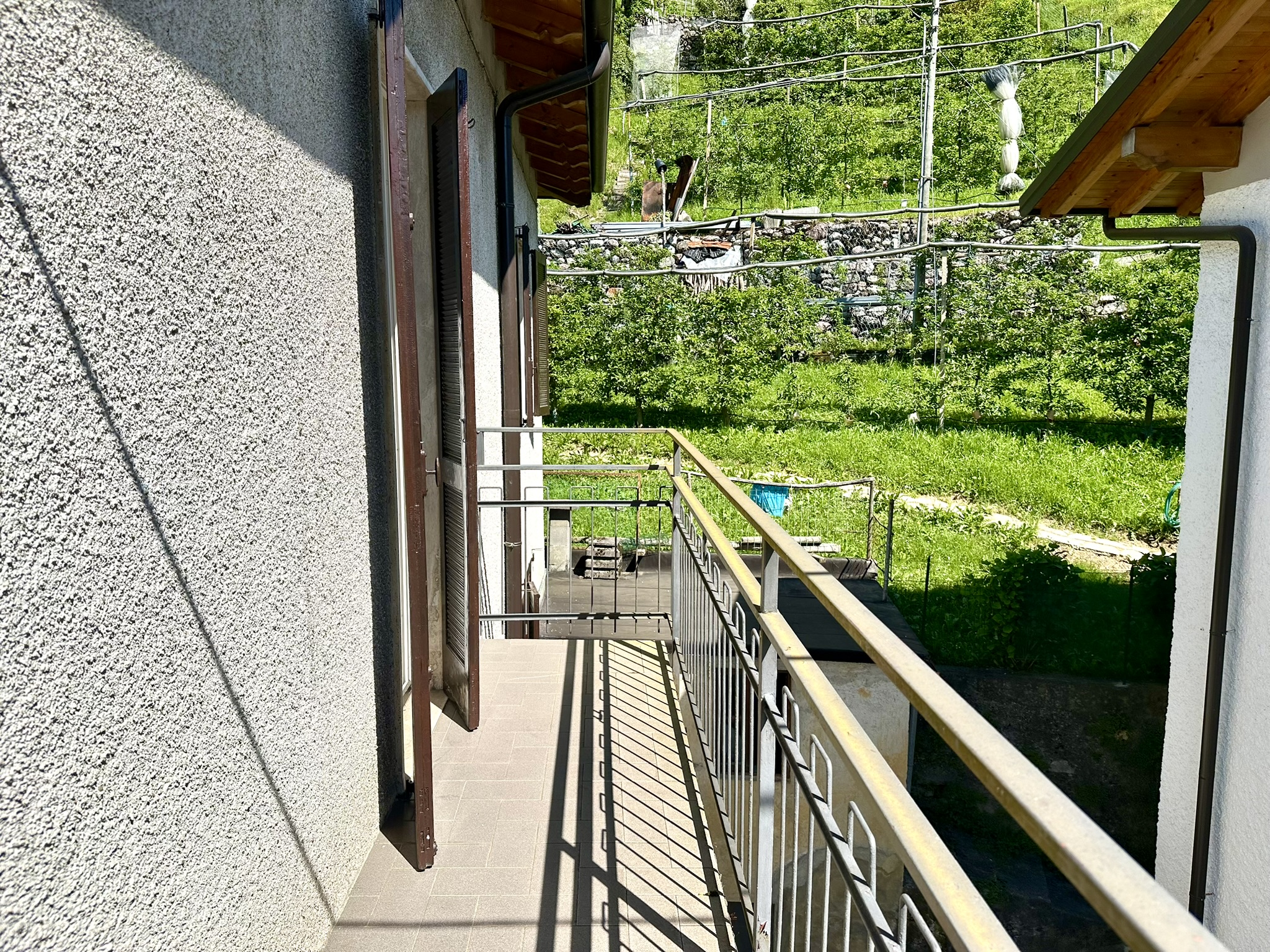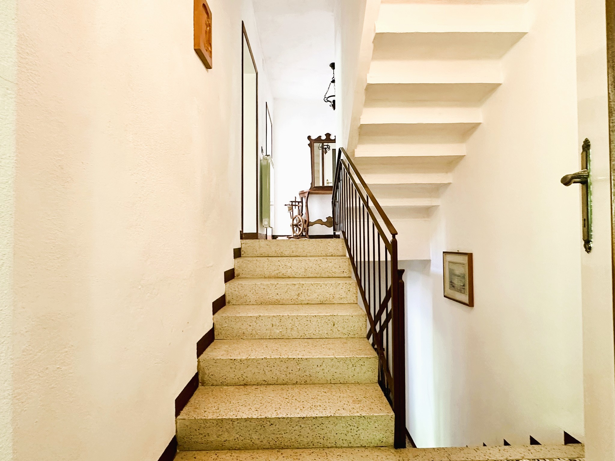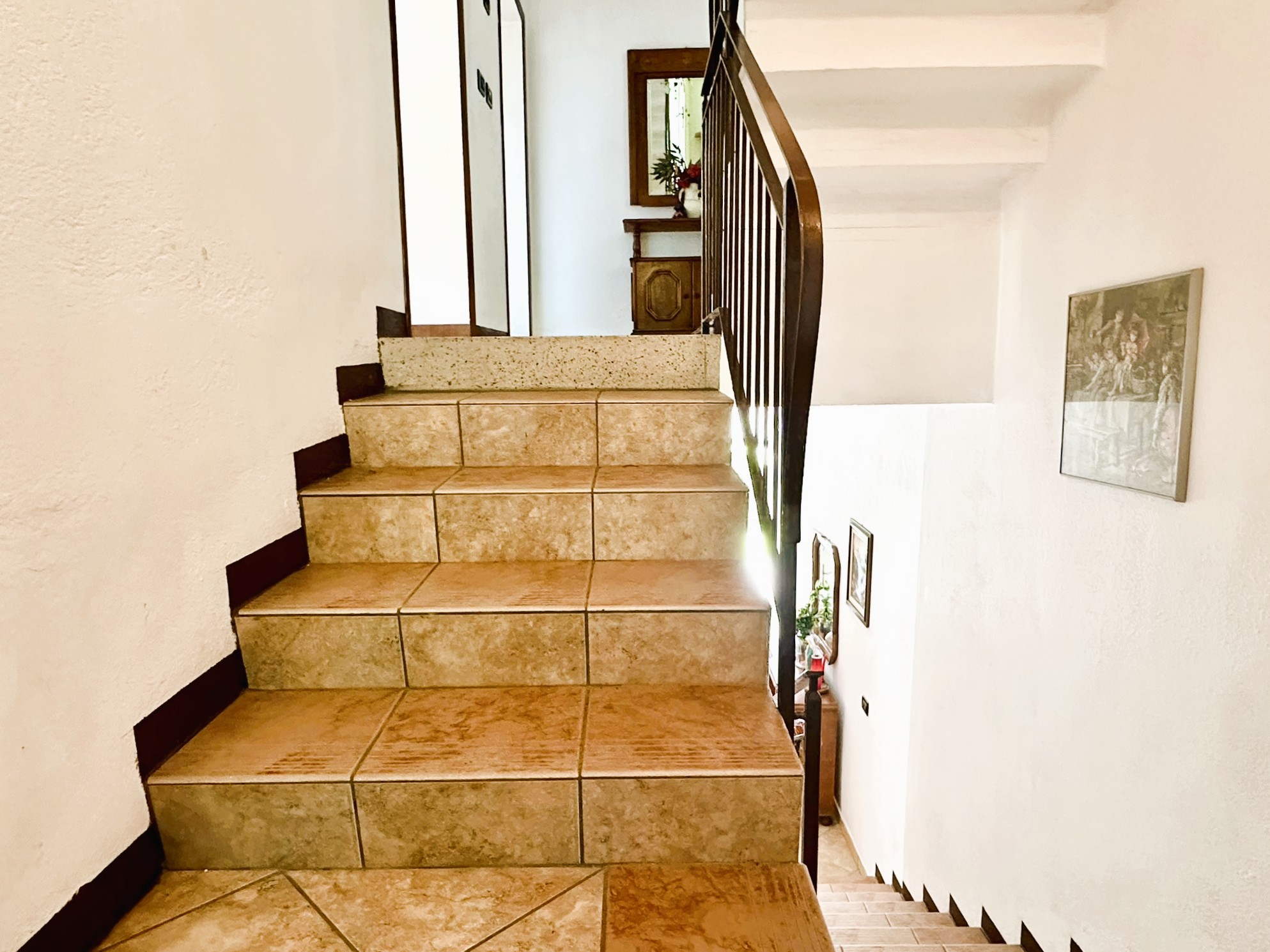 L’immobile è contornato da una lunga balconata, ideale per trascorrere piacevoli momenti all’aperto, pranzare/cenare e soprattutto godere della tranquillità e della vista dominante, completamente immersi nella natura. Anche al piano terra c’è un gradevole e comodo terrazzino ad uso esclusivo. Pavimenti in ceramica e in graniglia, infissi in legno con doppi vetri, persiane esterne in legno, tetto in perfetto stato. Termoautonomo con caldaia all’interno dell’appartamento.