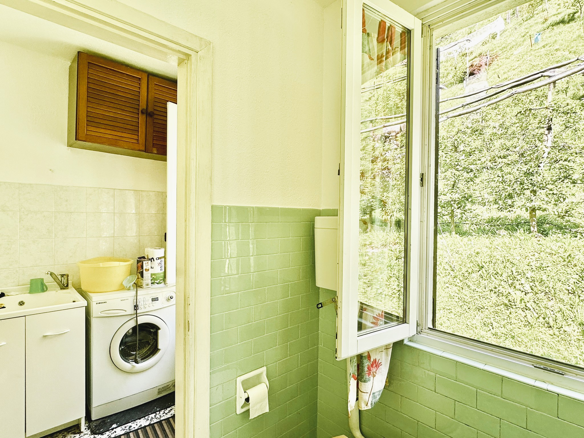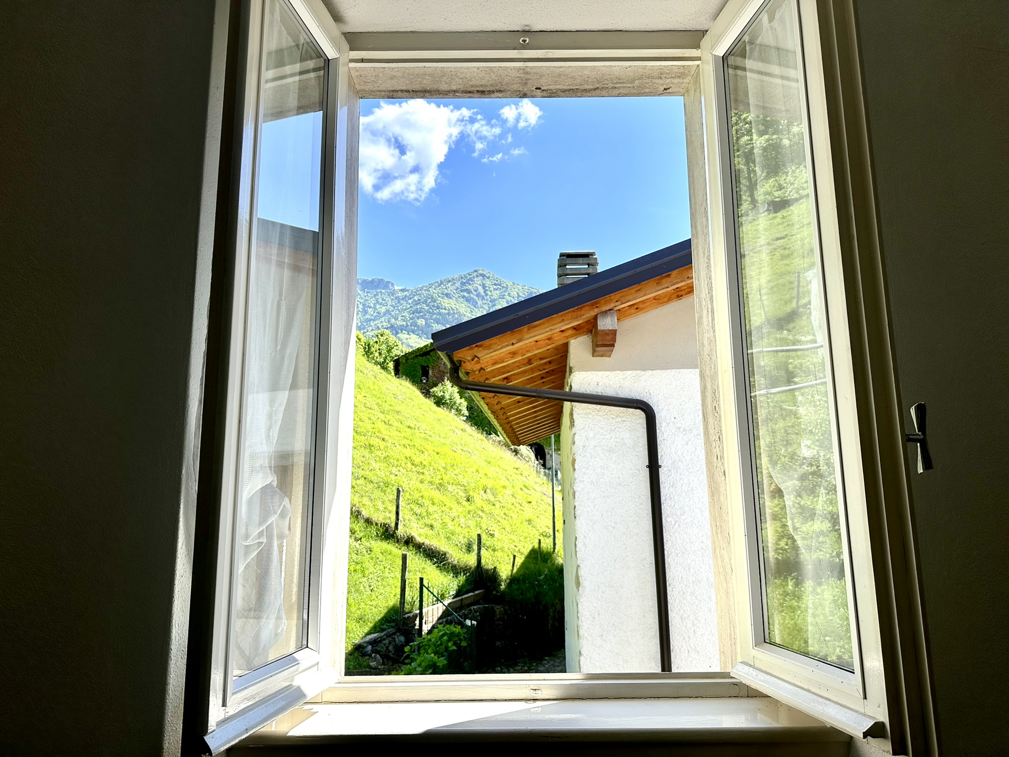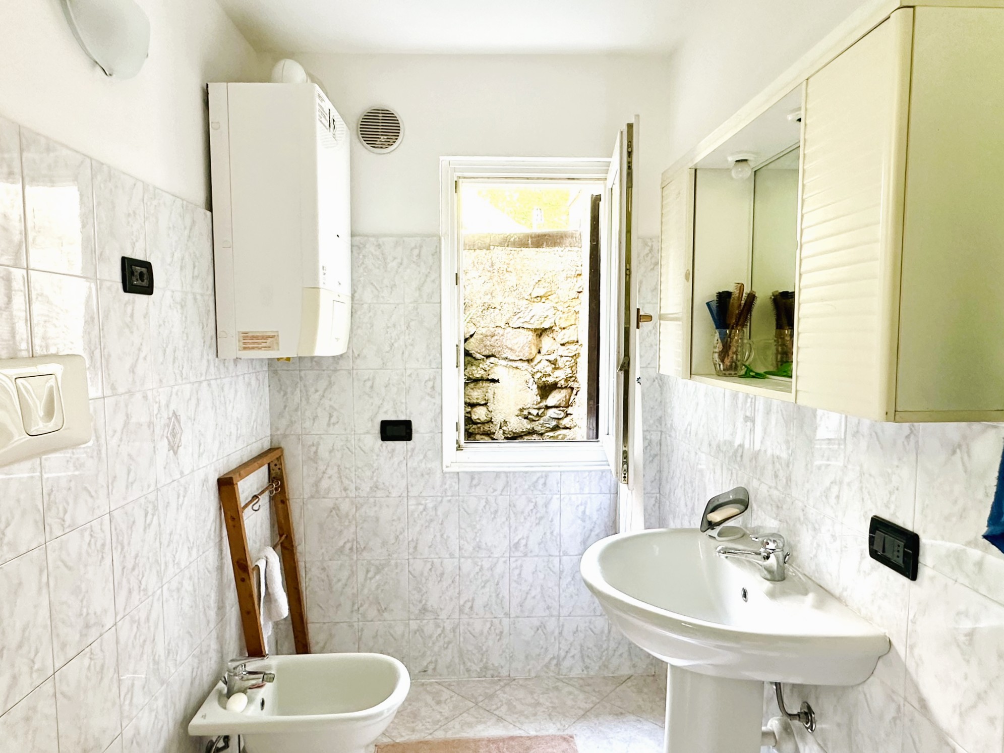 L’immobile è contornato da una lunga balconata, ideale per trascorrere piacevoli momenti all’aperto, pranzare/cenare e soprattutto godere della tranquillità e della vista dominante, completamente immersi nella natura. Anche al piano terra c’è un gradevole e comodo terrazzino ad uso esclusivo. Pavimenti in ceramica e in graniglia, infissi in legno con doppi vetri, persiane esterne in legno, tetto in perfetto stato. Termoautonomo con caldaia all’interno dell’appartamento.