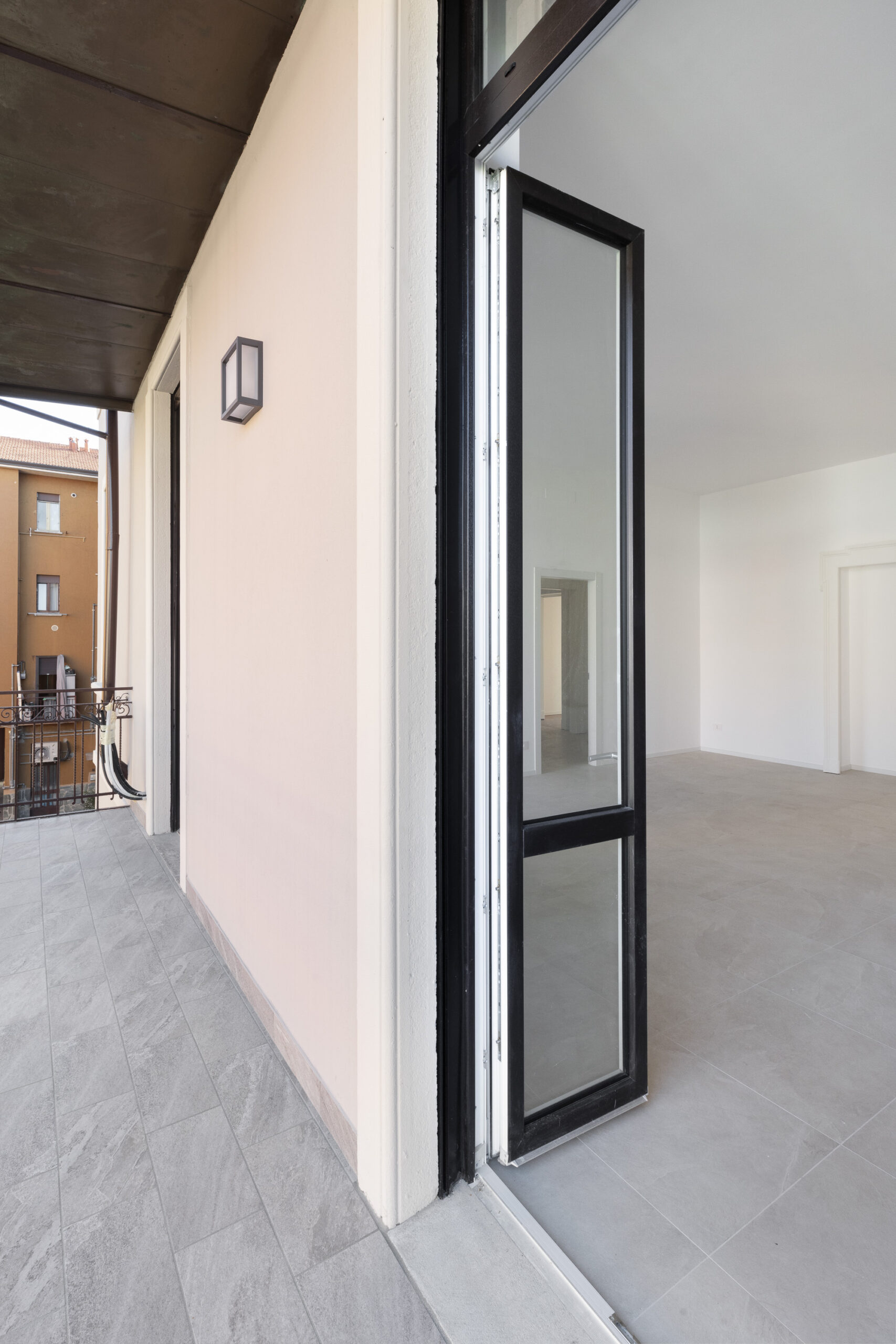 L’appartamento, denominato “Visconti” è composto da ingresso, ampio e luminoso salone doppio con cucina, 2 grandi camere, comodo disimpegno dove sono stati creati una lavanderia ed il guardaroba, doppi servizi di cui uno finestrato con box doccia ed uno cieco con vasca da bagno ed aereazione meccanica. Dal salone si accede ad una lunga balconata, con silenzioso affaccio interno sul verde, ideale per trascorrere piacevoli momenti di relax ma anche di svago e di convivialità.