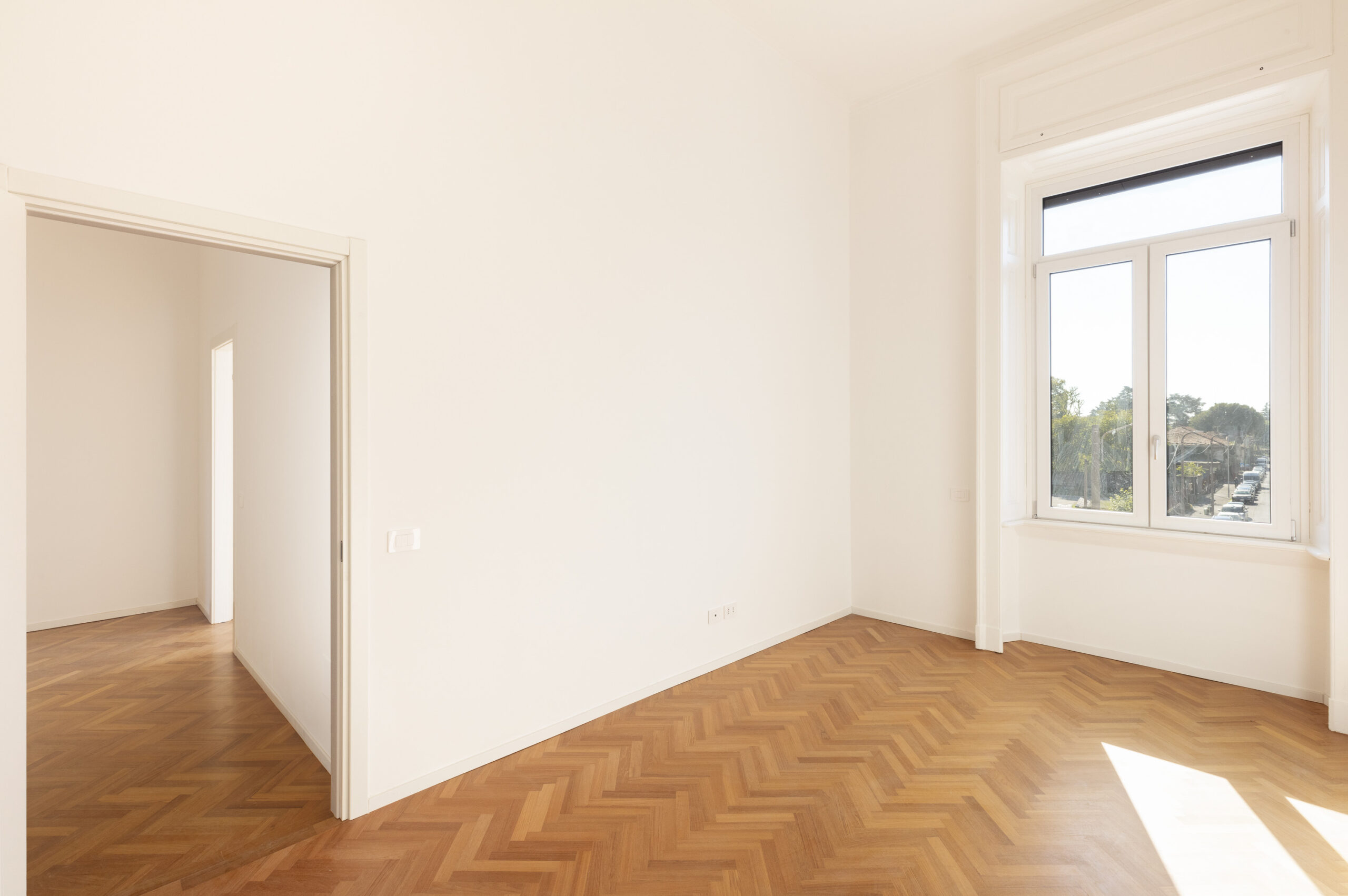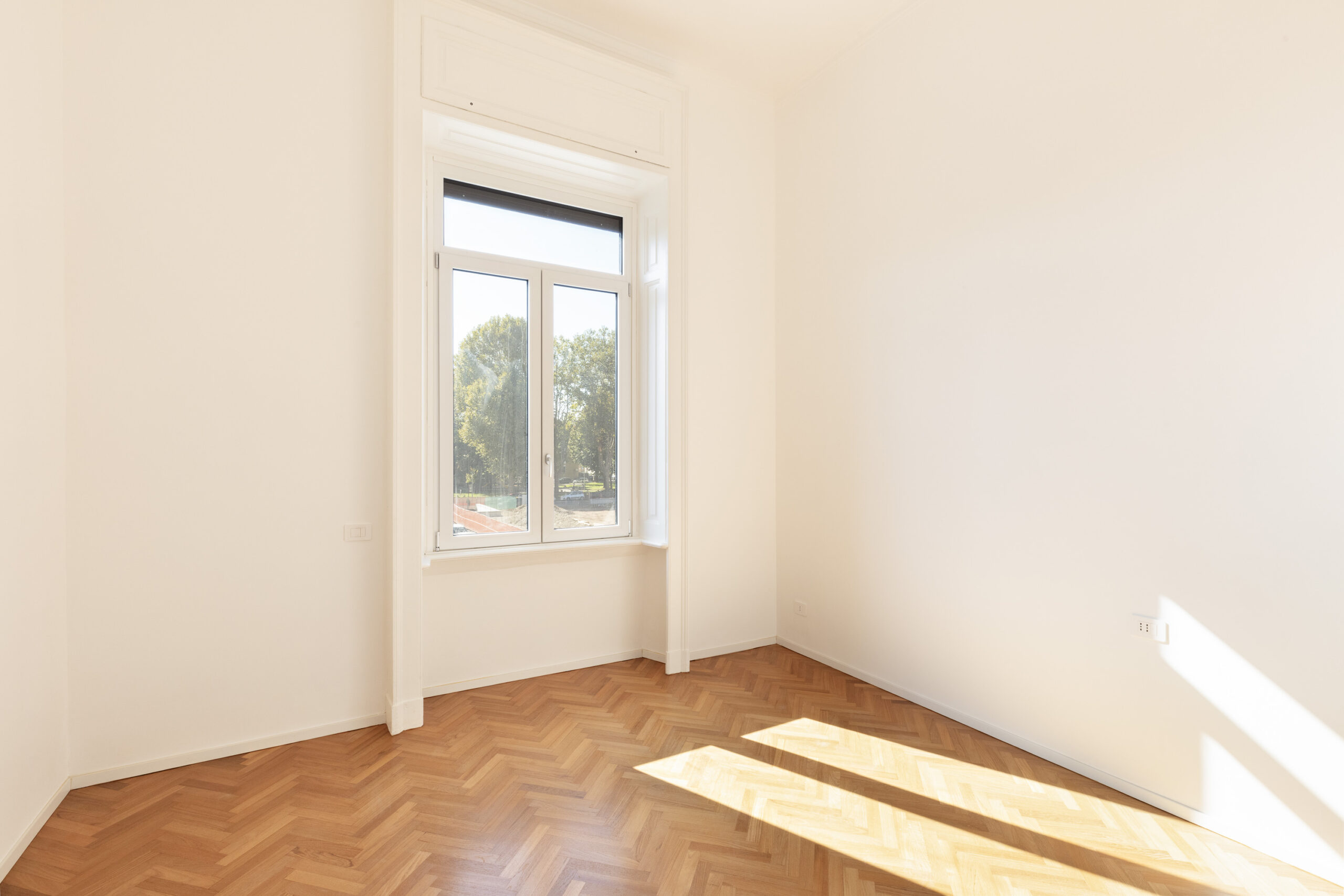 I pavimenti sono in piastrelloni di gres Emilceramica nella zona giorno, nei bagni e nei disimpegni, parquet di rovere originale, posato a lisca, nelle camere. Moderni e performanti infissi di nuovissima generazione, a taglio termico, tapparelle elettriche, impianti nuovi certificati. Porta blindata, predisposizione aria condizionata, sanitari a filo muro.