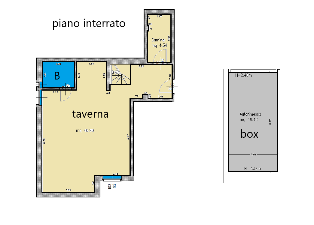 Piano seminterrato: ampio open space collegato al piano superiore da scala interna, bagno finestrato e lavanderia. Dalla taverna è possibile accedere direttamente alle parti comuni. Completano la proprietà una cantina ed un ampio box con serranda elettrica.