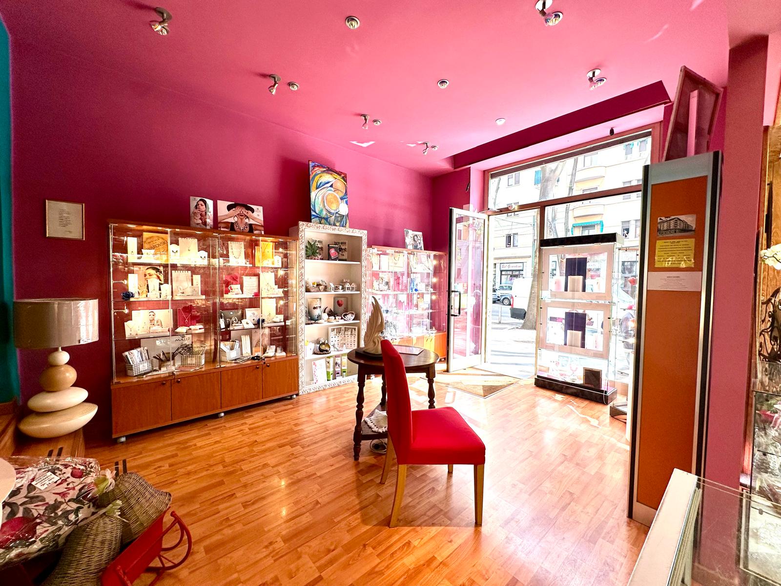 L’attuale disposizione interna deriva dalla precedente fusione di due singoli negozi, con una vetrina ciascuno.