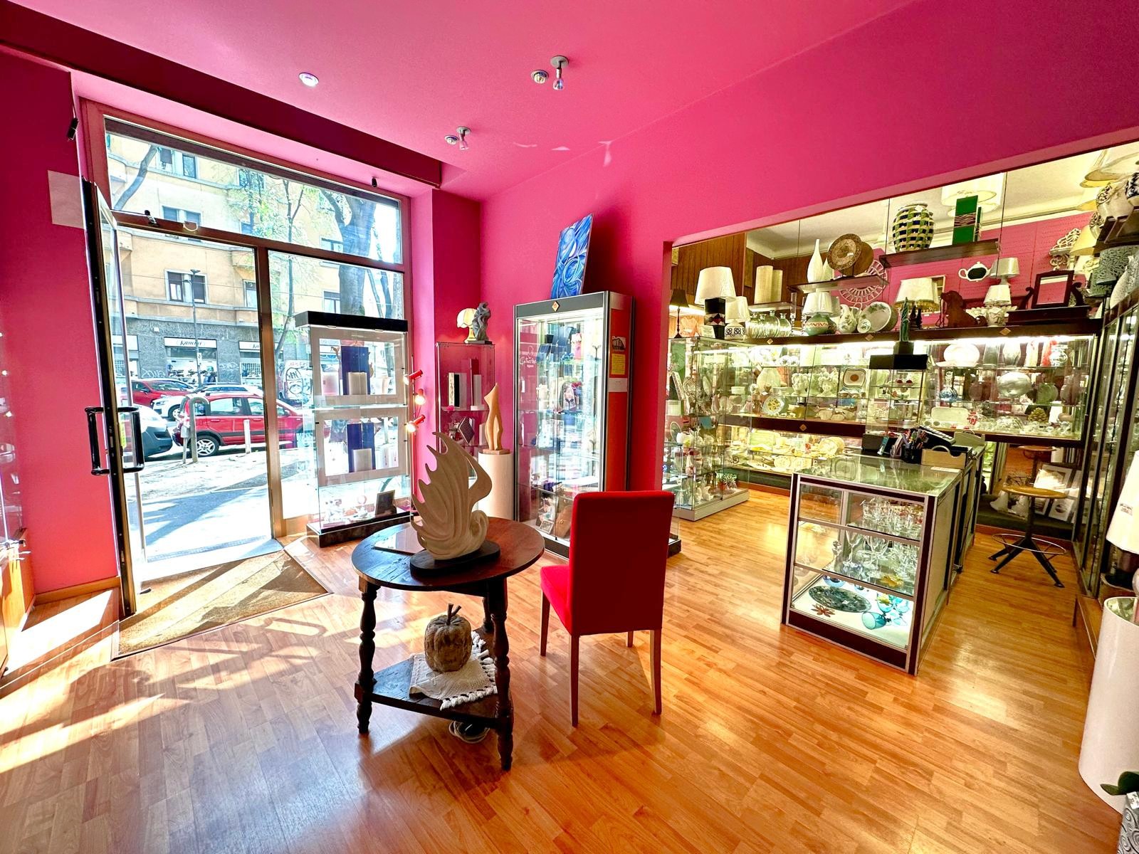 In Via Aselli 27, in posizione unica e strategica che garantisce massima visibilità (all’incrocio con Via Amadeo/Beato Angelico), il negozio si trova in un palazzo d’epoca dei primi del ‘900, con due vetrine su Via Aselli ed ingresso dalle scale del condominio.