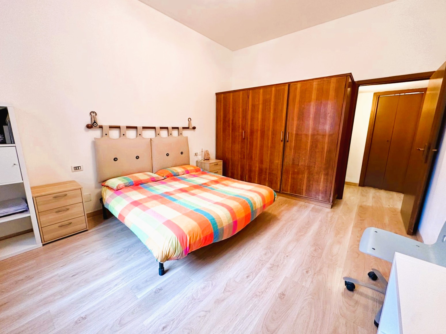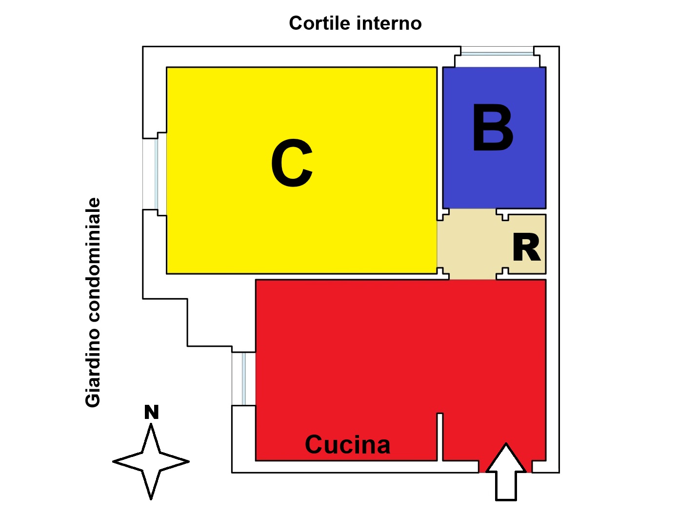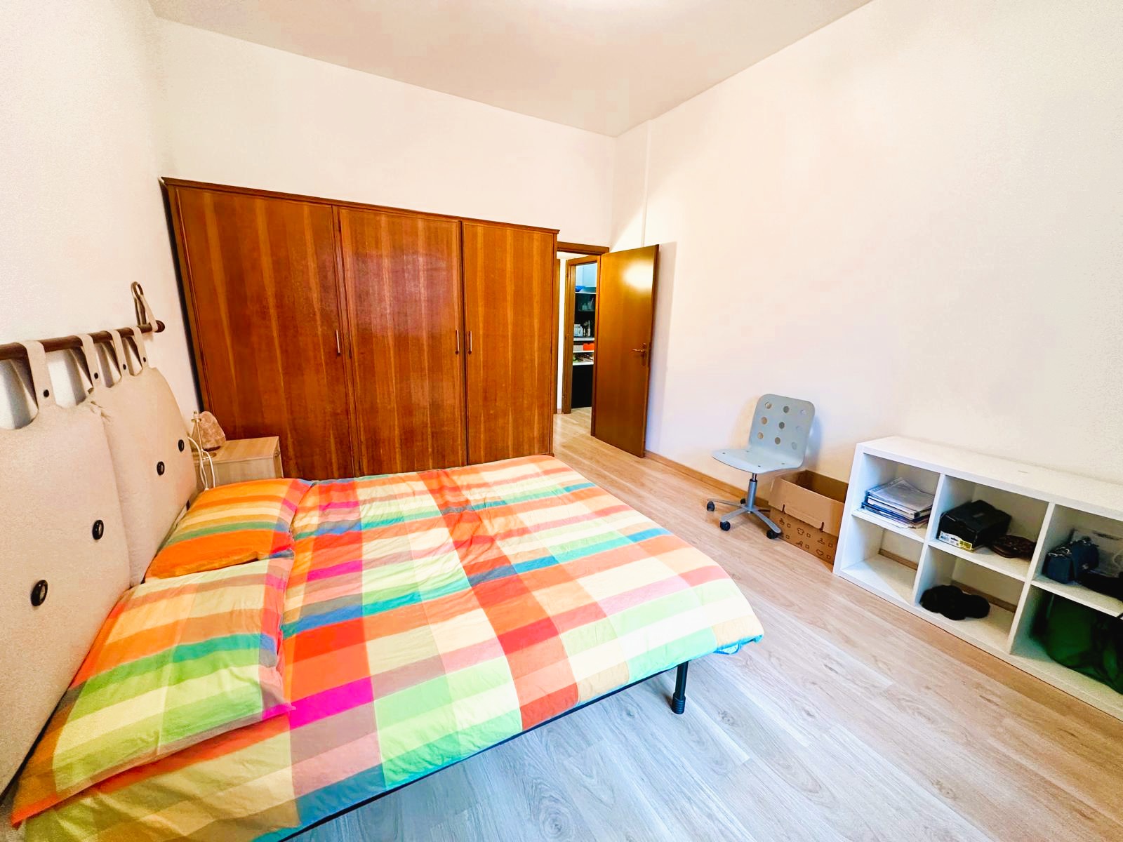 L’appartamento è composto da ingresso, piccolo soggiorno con cucina a vista, ampia camera matrimoniale, bagno finestrato e ripostiglio. Doppia esposizione luminosa e tranquilla su giardino e corte interna. Completa la proprietà una comoda e spaziosa cantina di pertinenza.