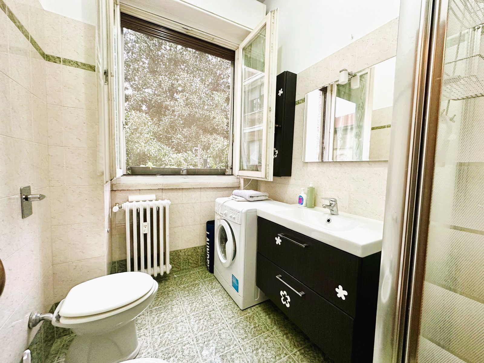 Riscaldamento centralizzato a radiatori con termo valvole e contabilizzatori di calorie, aria condizionata. Spese condominiali contenute!