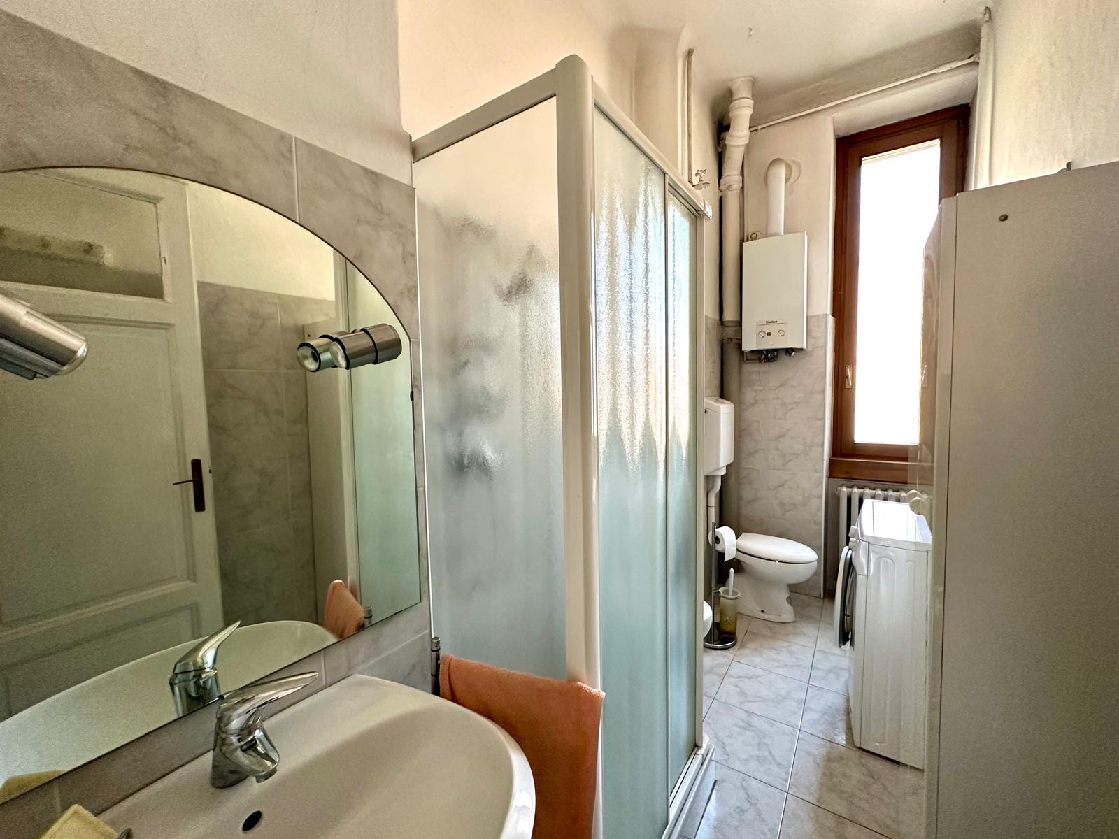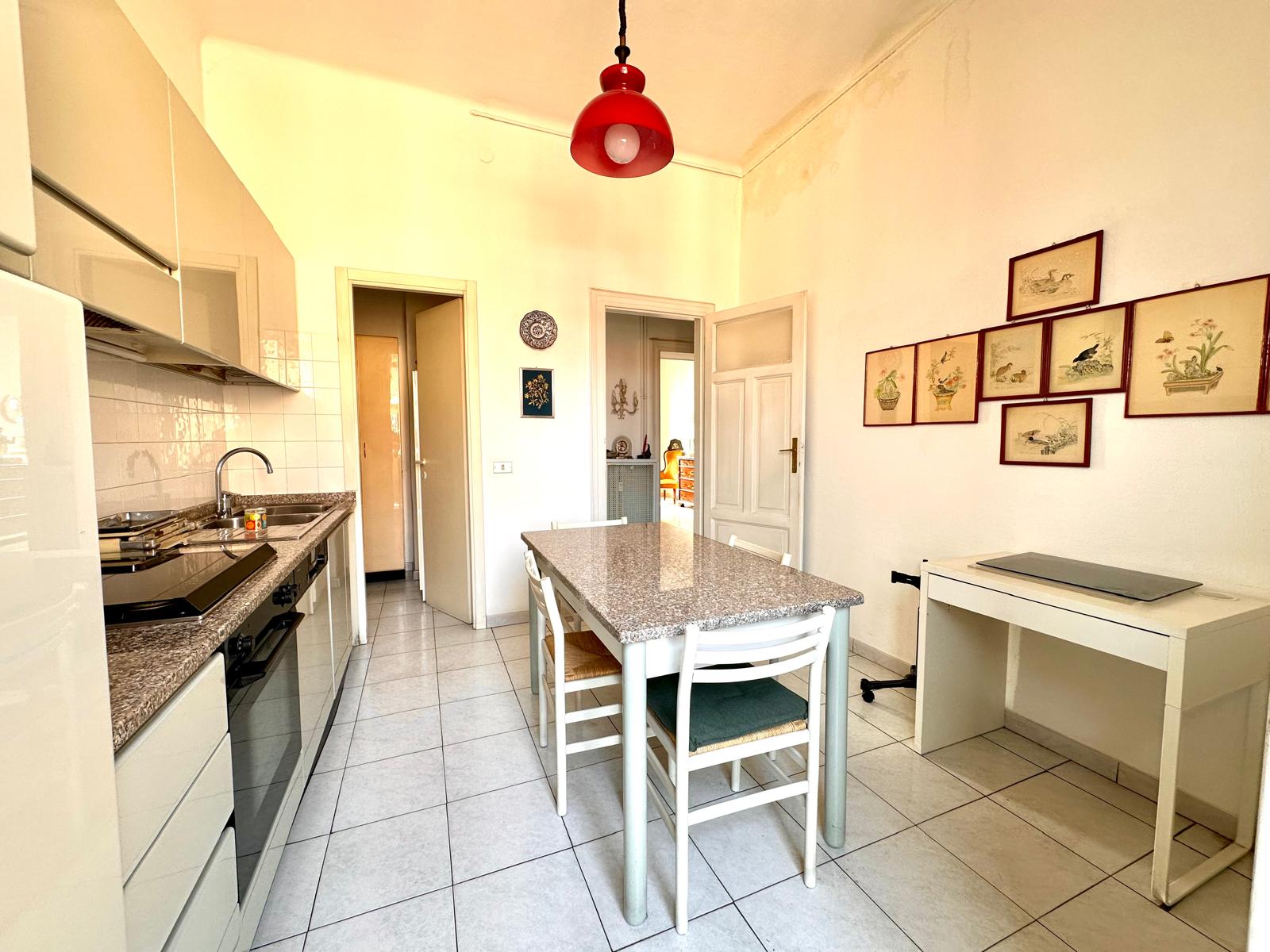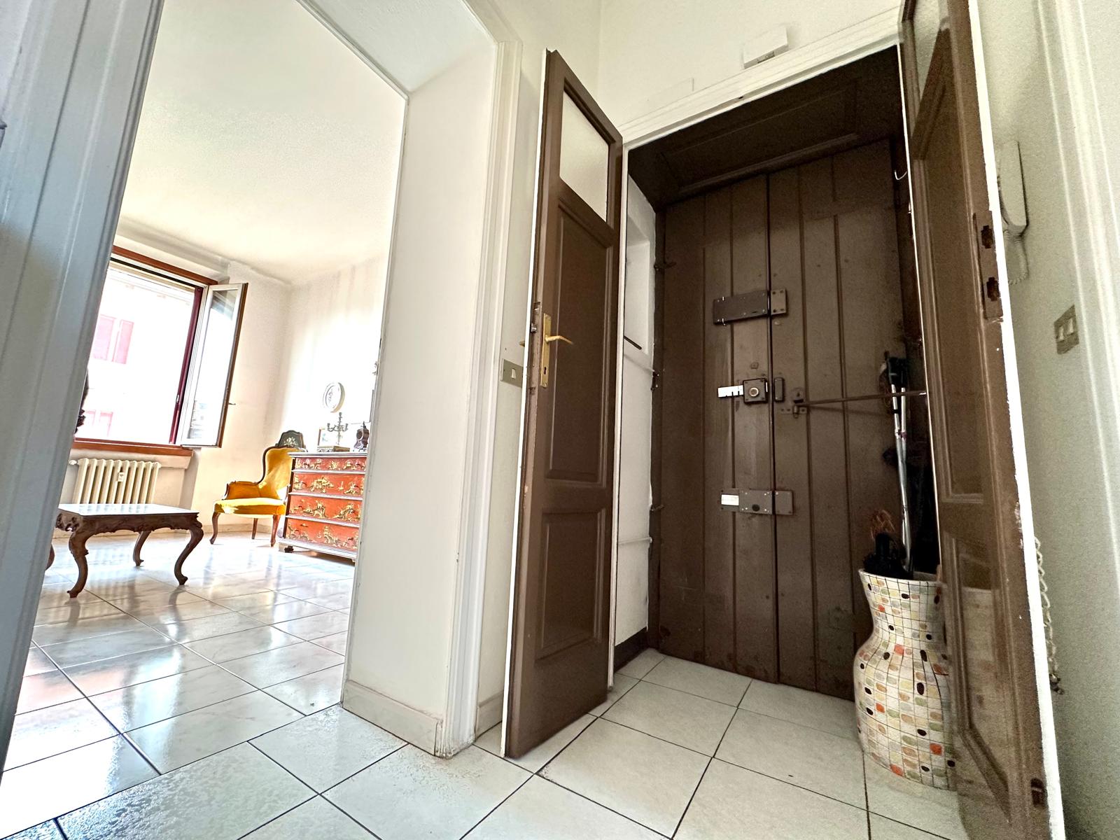 L’assenza di strutture portanti di intralcio offre la possibilità di creare un trilocale con cucina a vista. Completano la proprietà una cantina e un solaio di pertinenza. L’immobile presenta pavimenti in ceramica, porte interne originali in buono stato manutentivo, infissi esterni in legno con doppi vetri, zanzariere e persiane in alluminio.