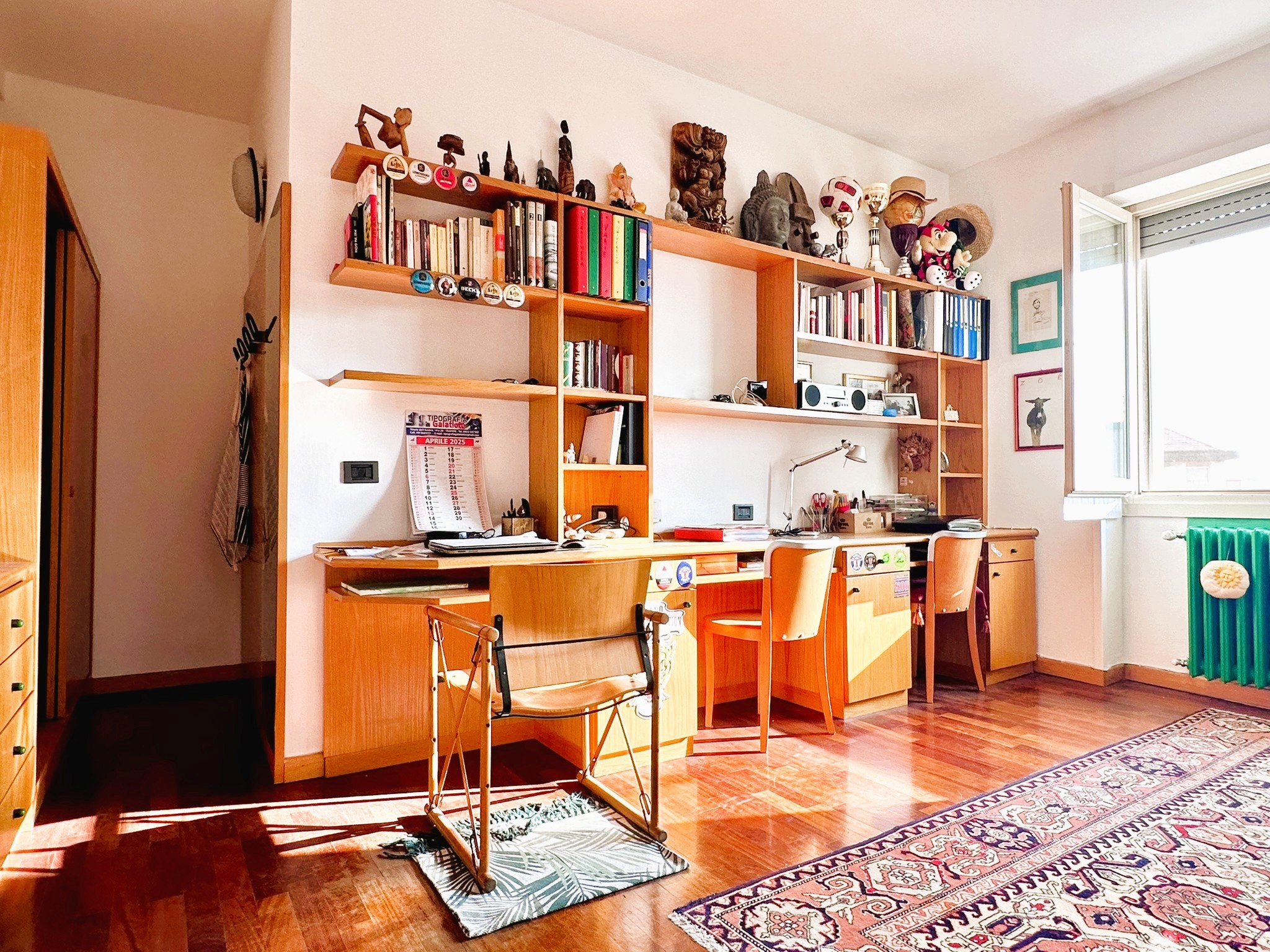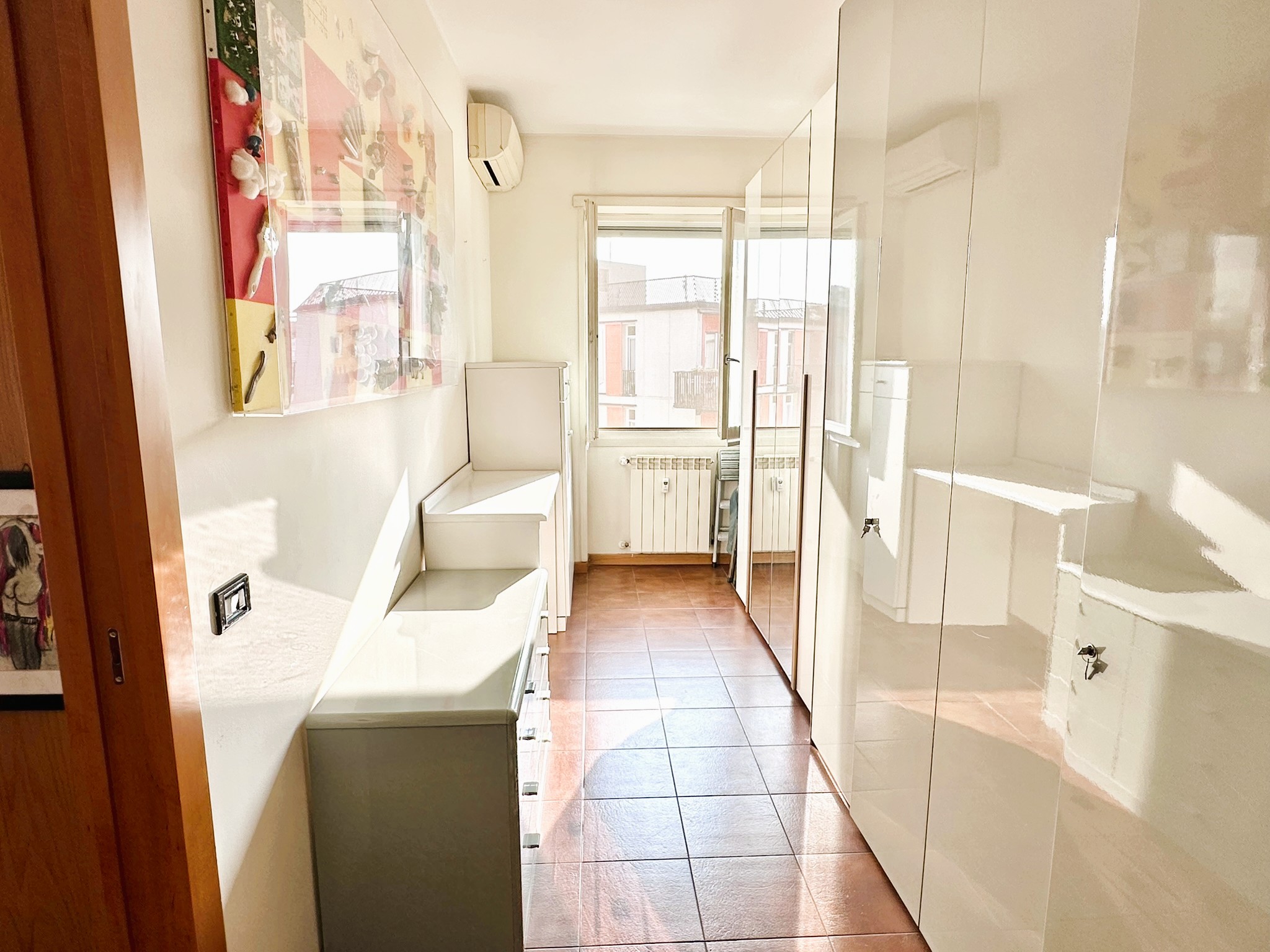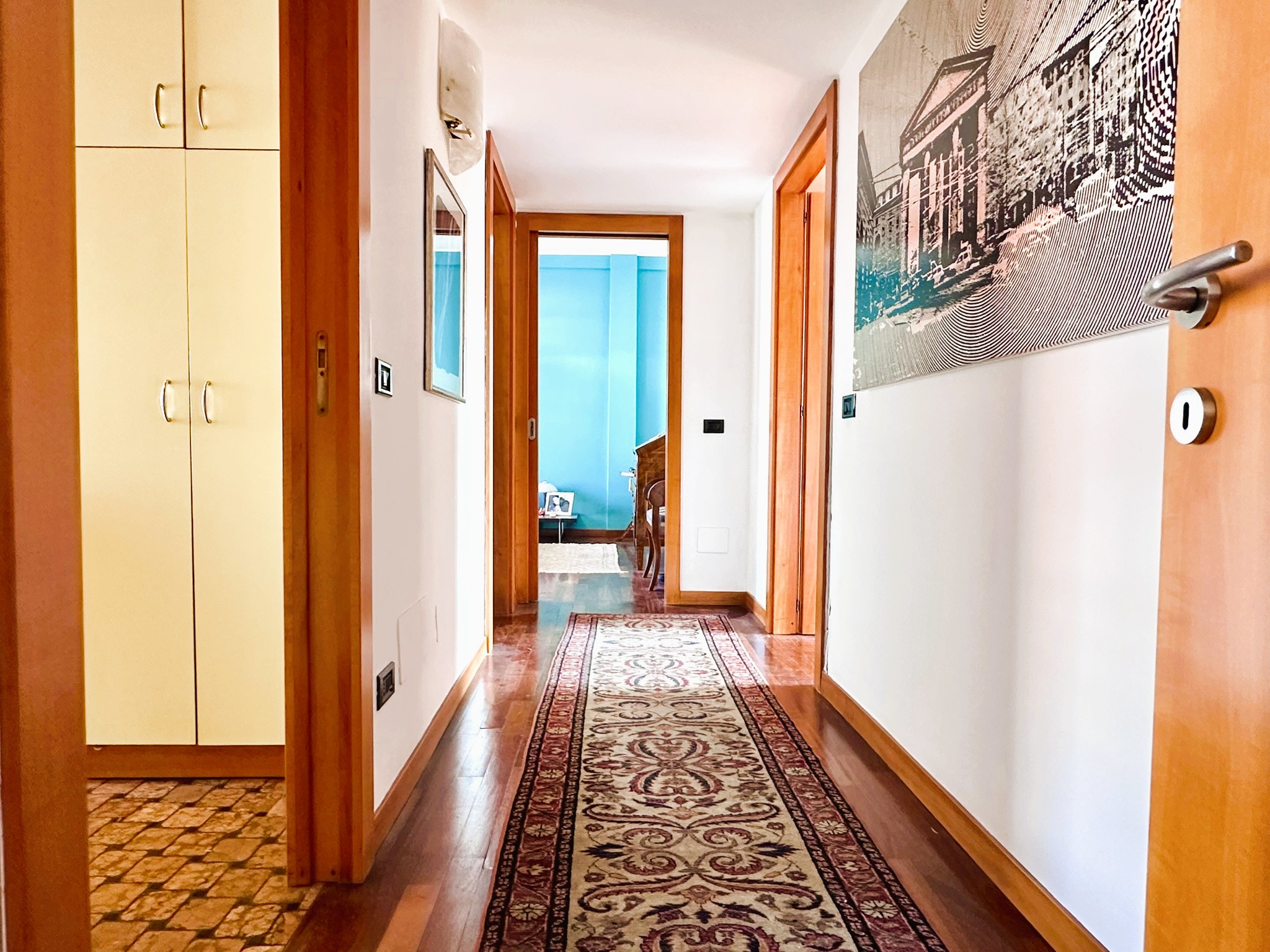L’immobile è composto da ingresso ampio salone con due finestre, cucina, 3 camere da letto matrimoniali molto spaziose, una quarta stanza guardaroba/studio, bagno finestrato con doccia e vasca, ripostiglio soppalcato portante e ripostiglio esterno dove è presente la lavatrice e lo scaldabagno.