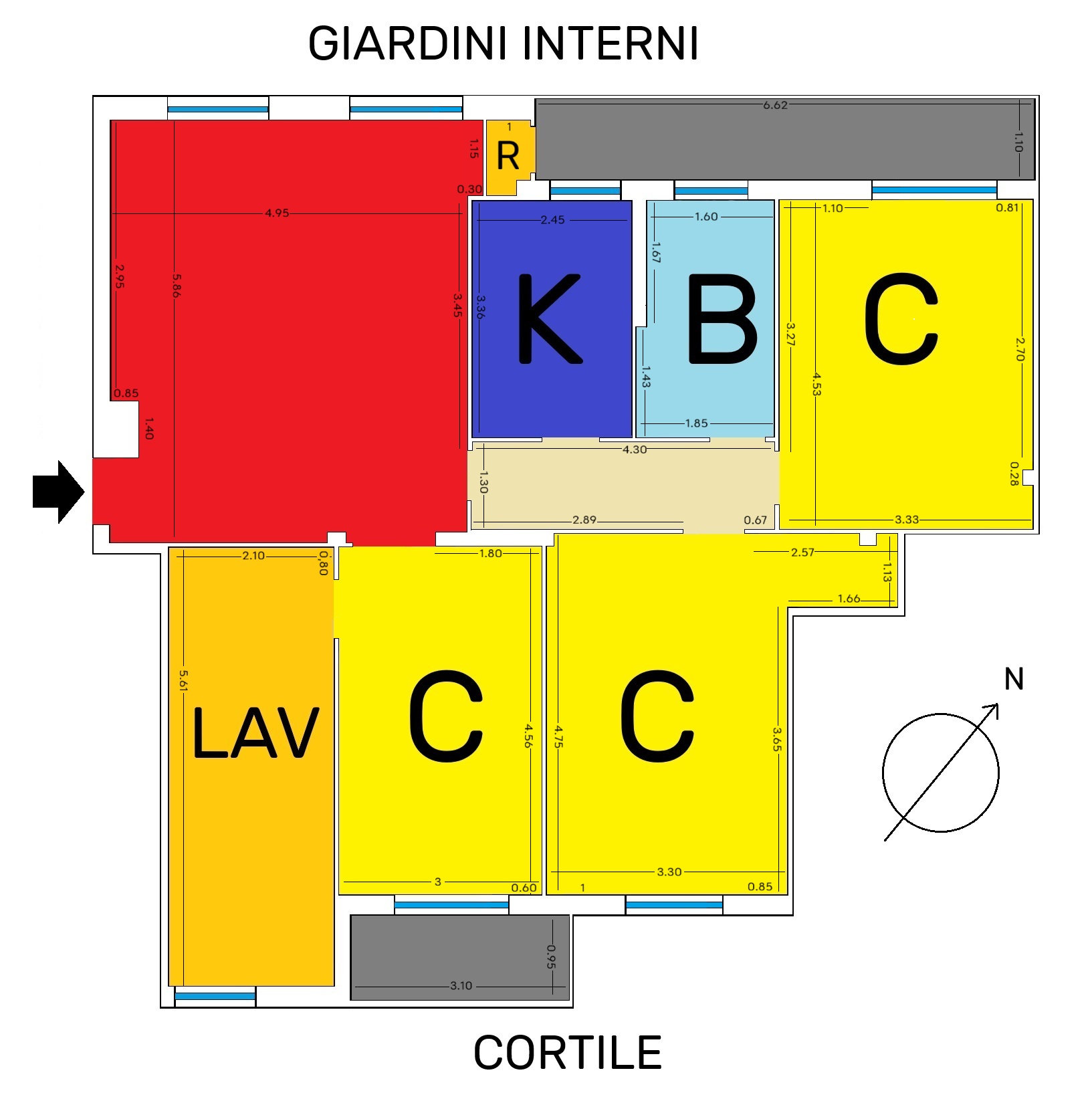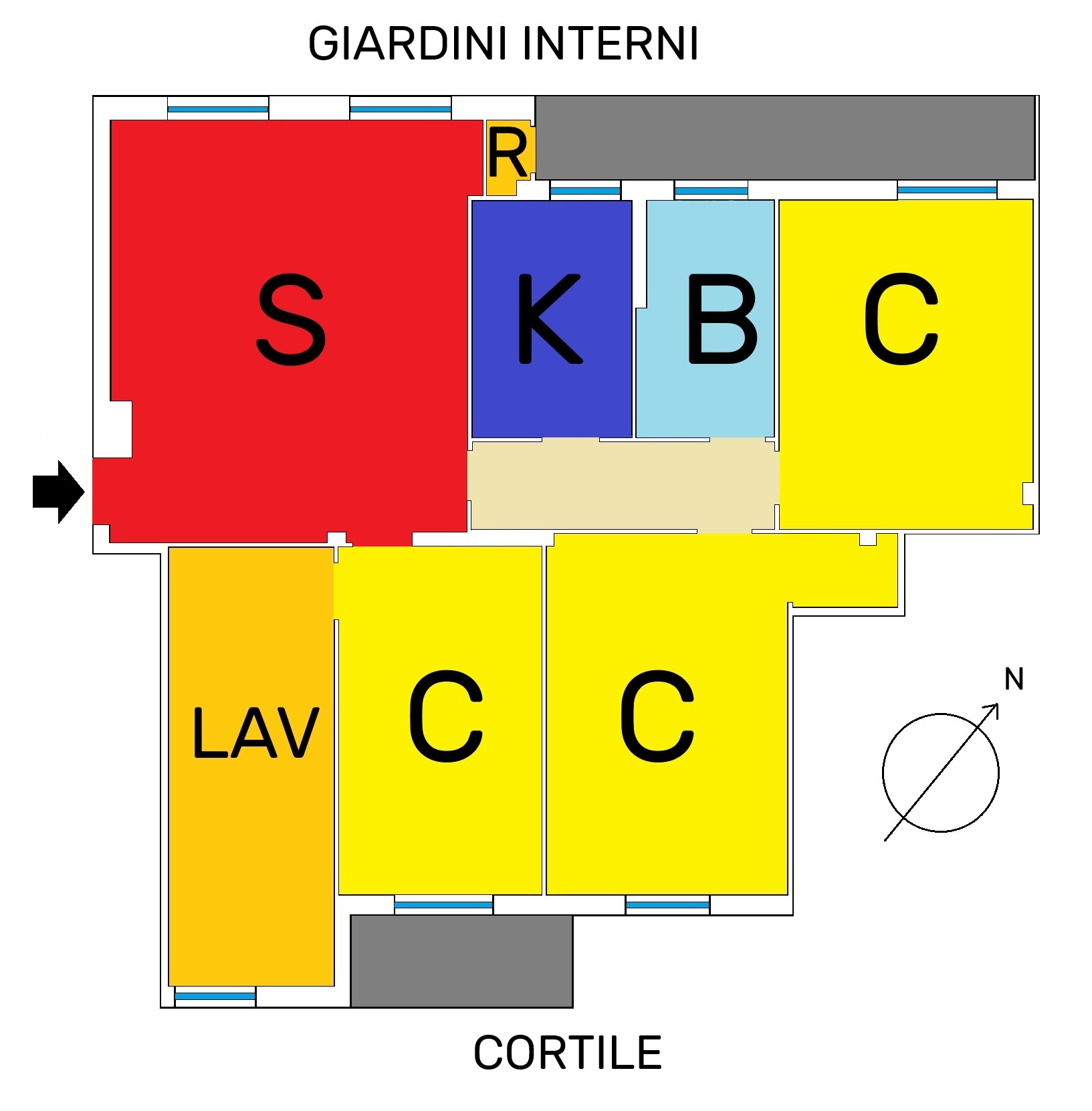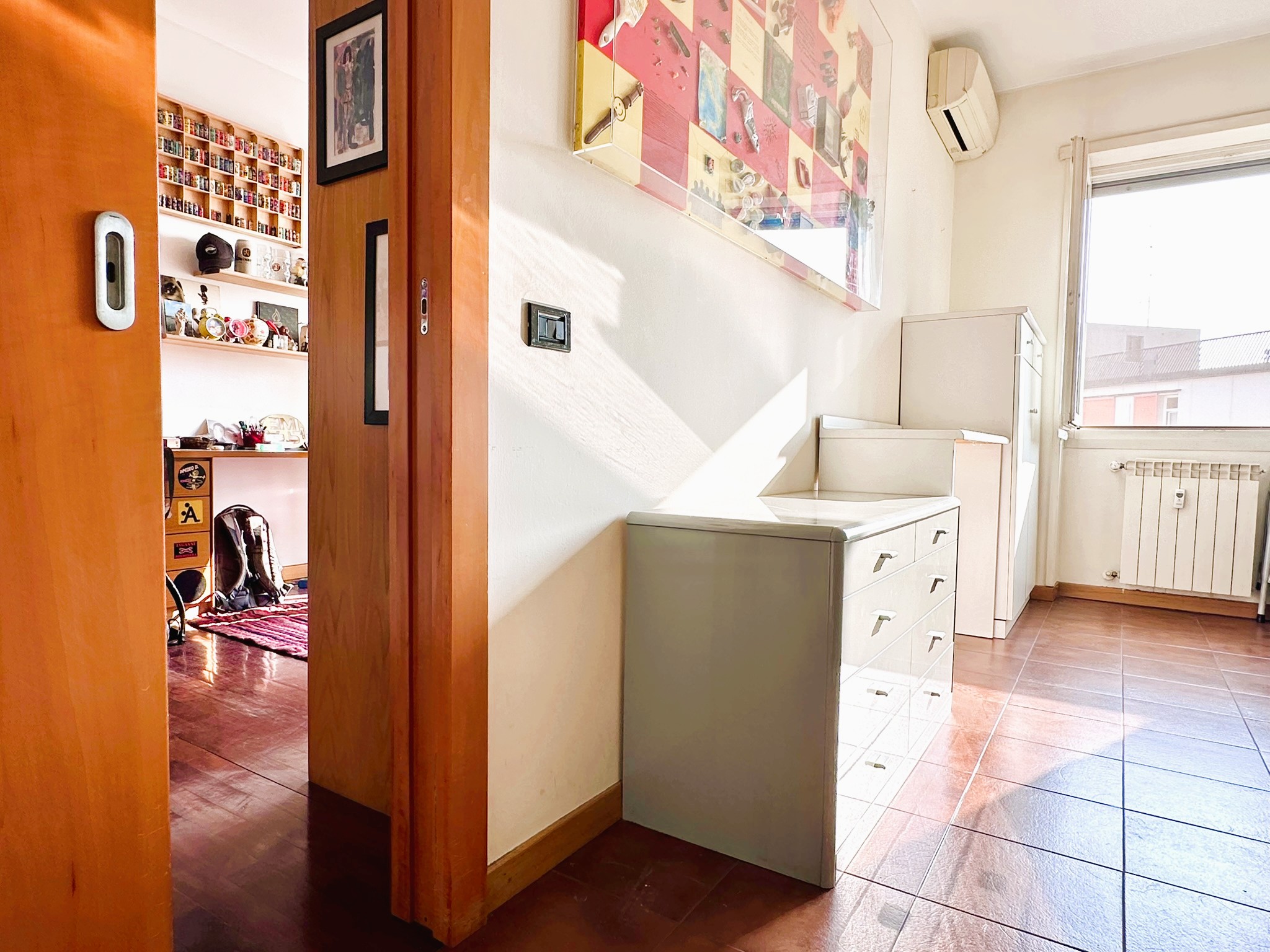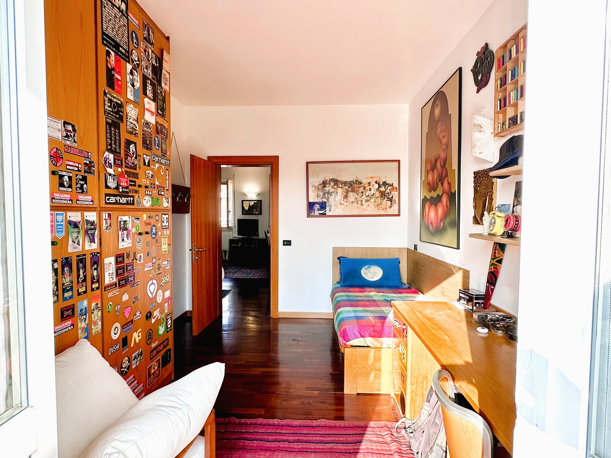 L’immobile è composto da ingresso ampio salone con due finestre, cucina, 3 camere da letto matrimoniali molto spaziose, una quarta stanza guardaroba/studio, bagno finestrato con doccia e vasca, ripostiglio soppalcato portante e ripostiglio esterno dove è presente la lavatrice e lo scaldabagno.