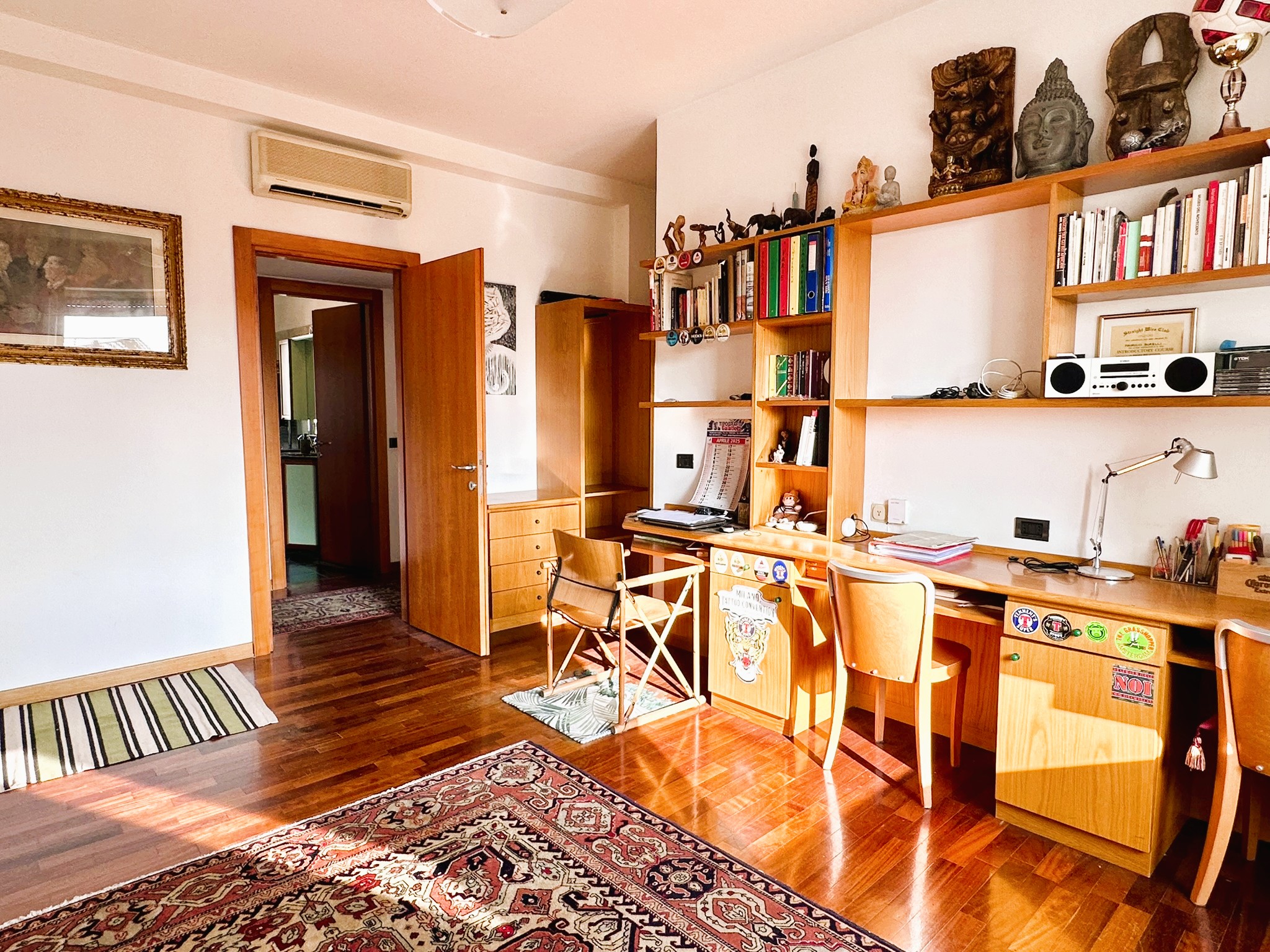 Luminosissima e panoramica esposizione a Sud/Est verso i giardini interni e Nord Ovest verso l’esterno. Completano la proprietà un solaio di pertinenza al settimo piano ed un ampio box di 16mq in Via Lucerna.